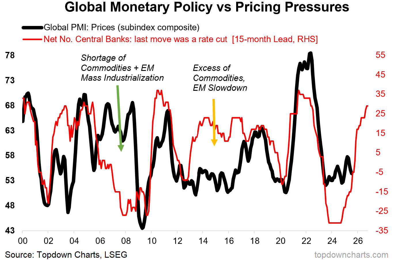 I would argue the economic logic in this chart is that gold has in part been driven up by devaluation and monetary easing; which have in part laid the foundation for better growth ahead (and inflation upside risk).