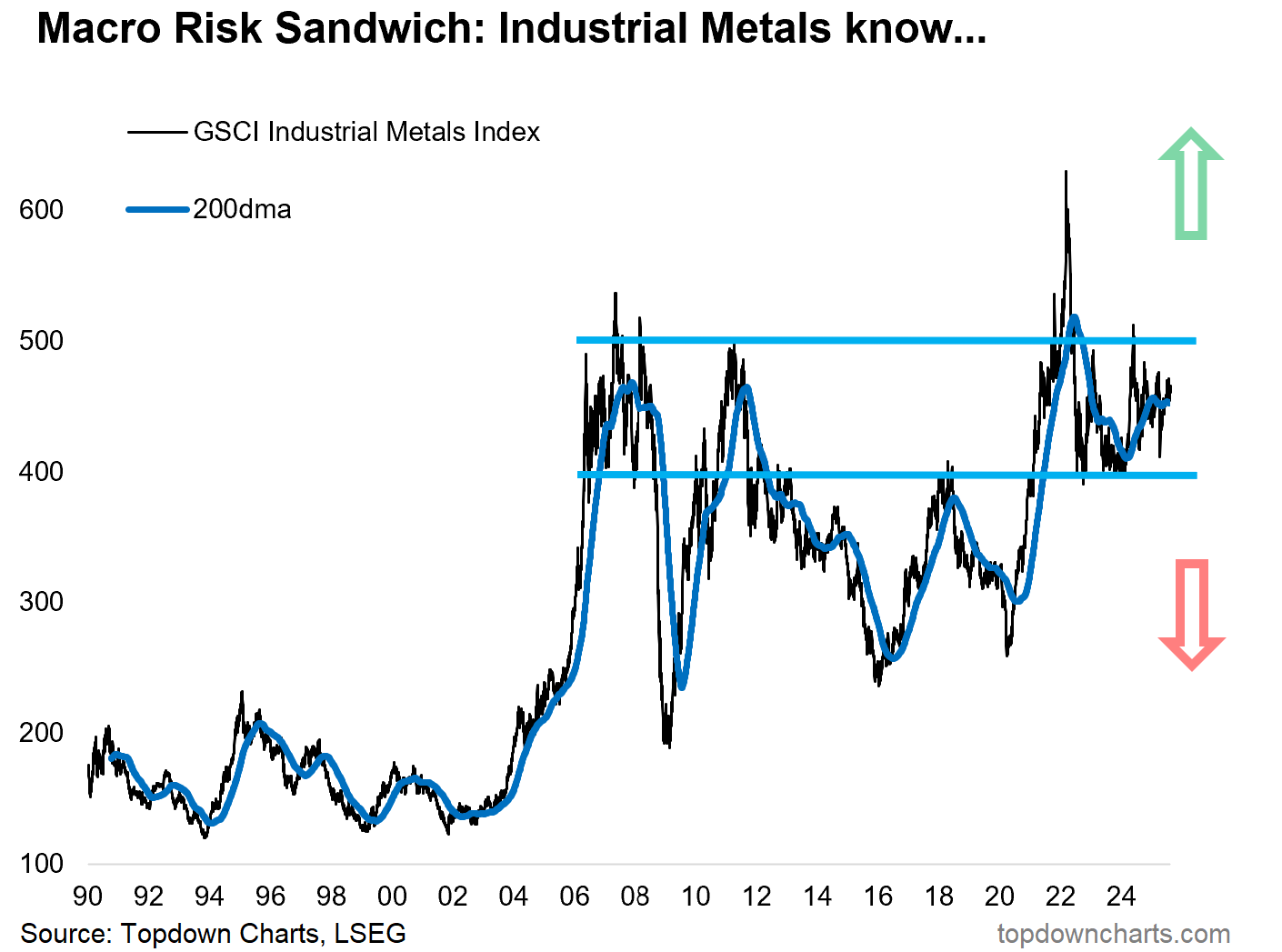 For now we see they’re still stuck in the middle, and for reference; the macro risk scenario of them breaking *down* instead of up would be deflation and recession (i.e. the opposite of reacceleration + resurgence); I’m not seeing any evidence for that path just yet. My base case is a breakout to the upside driven by better growth and higher inflation.
