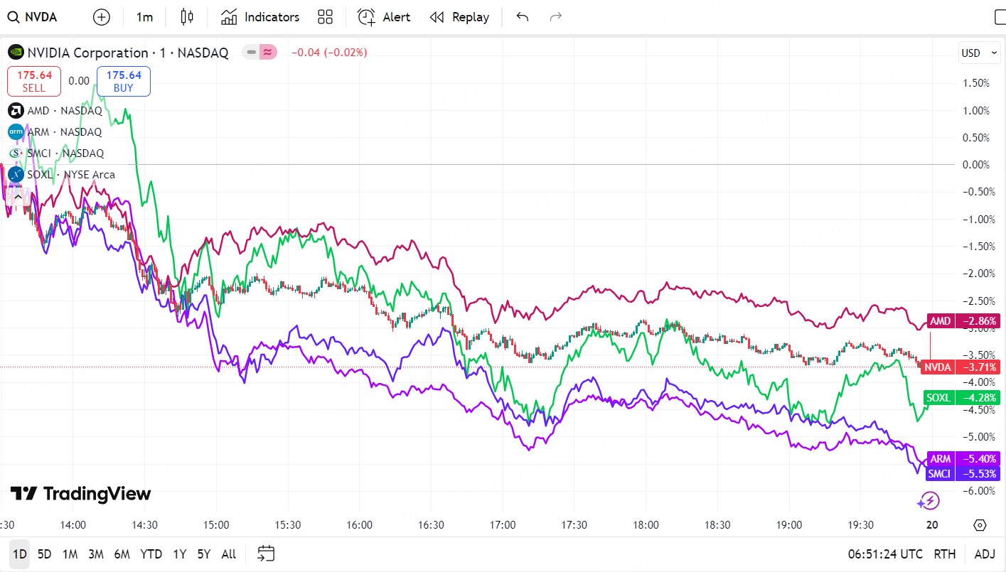 Affect by the report, chip stocks all pull back, leading by $NVIDIA(NVDA)$.