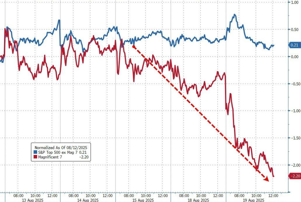 Over the past five days, Mag 7 stocks $Roundhill Magnificent Seven ETF(MAGS)$ have fallen sharply, while the S&P 493 has remained largely flat.