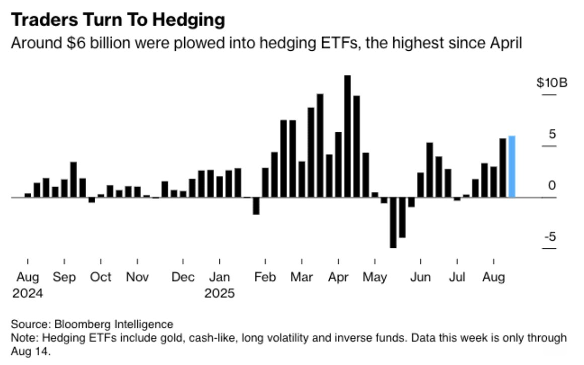 Adding to this cautious sentiment, investors poured $6 billion into hedging ETFs last week — the largest inflow since April — suggesting growing demand for downside protection.