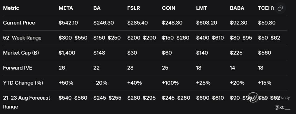 Options Play: Buy $550 META calls or $250 COIN calls (August expiry) for 150-200% gains on a 5% move.