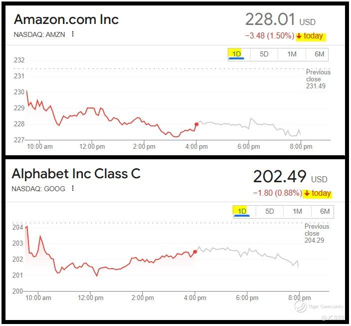 When Nasdaq fell big time on Tue, 19 Aug 2025, AMZN fell -1.5% and GOOG -0.88%, that is miniscule considering their stock prices. (see below)