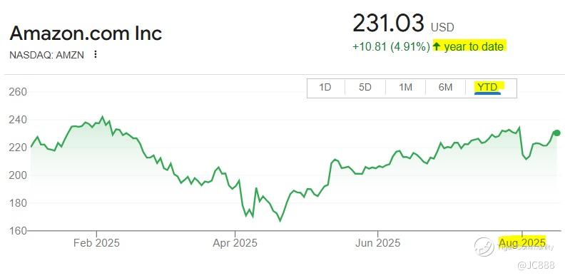 AMZN shares, hit earlier this year by Trump's sweeping tariff announcement, have since regained their footing and are now up +4.91% YTD (as of 15 Aug 2025). (see below)