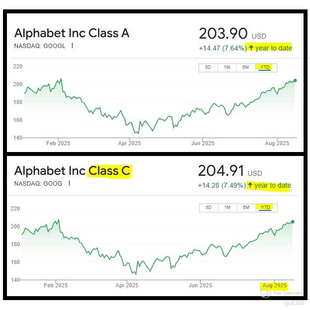 YTD, both Alphabet stocks are up average by about +7.5%. Numerically it looks better than AMZN but Alphabet stock price is about 15% lower than AMZN.