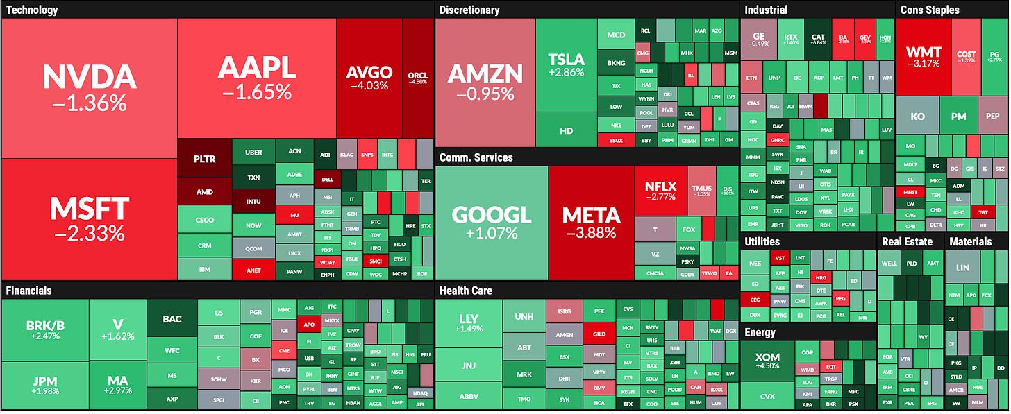 The following heat map presents the price variation during the last 5 days, and you can tell how weak has tech been while the gains have been driven by other sectors like Energy ( $Energy Select Sector SPDR Fund(XLE)$ gained +3% during the week), Real State ( $Real Estate Select Sector SPDR Fund(XLRE)$ +2,4%), Materials (+2,4%), and Financials ( $Financial Select Sector SPDR Fund(XLF)$ +2,1%) as part of the group of sectors rallying more than 2%; Industrials, Healthcare, and Consumer Discretionary gained more than 1% during the week.