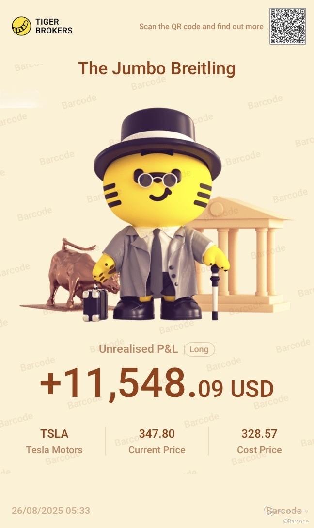 I’m not just tracking Tesla from the sidelines; I’m positioned in this breakout. At a $328.57 cost basis with Tesla now trading $347.80, my unrealised gains stand at +$11,548 USD. This isn’t theory; it’s conviction backed by capital and proof that the thesis is working in real time. I’m confident these gains are only the beginning if Tesla sustains above $350 and drives into the next structural leg higher.