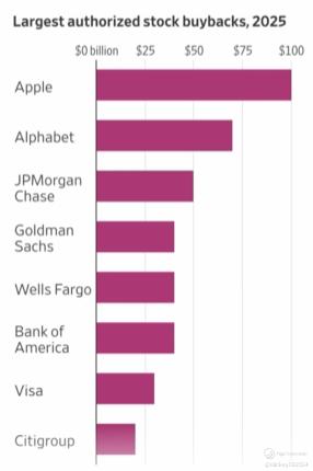 In 2025, U.S. corporations are projected to repurchase $1.1 trillion worth of stock, with Apple, Alphabet, and major banks leading the charge.