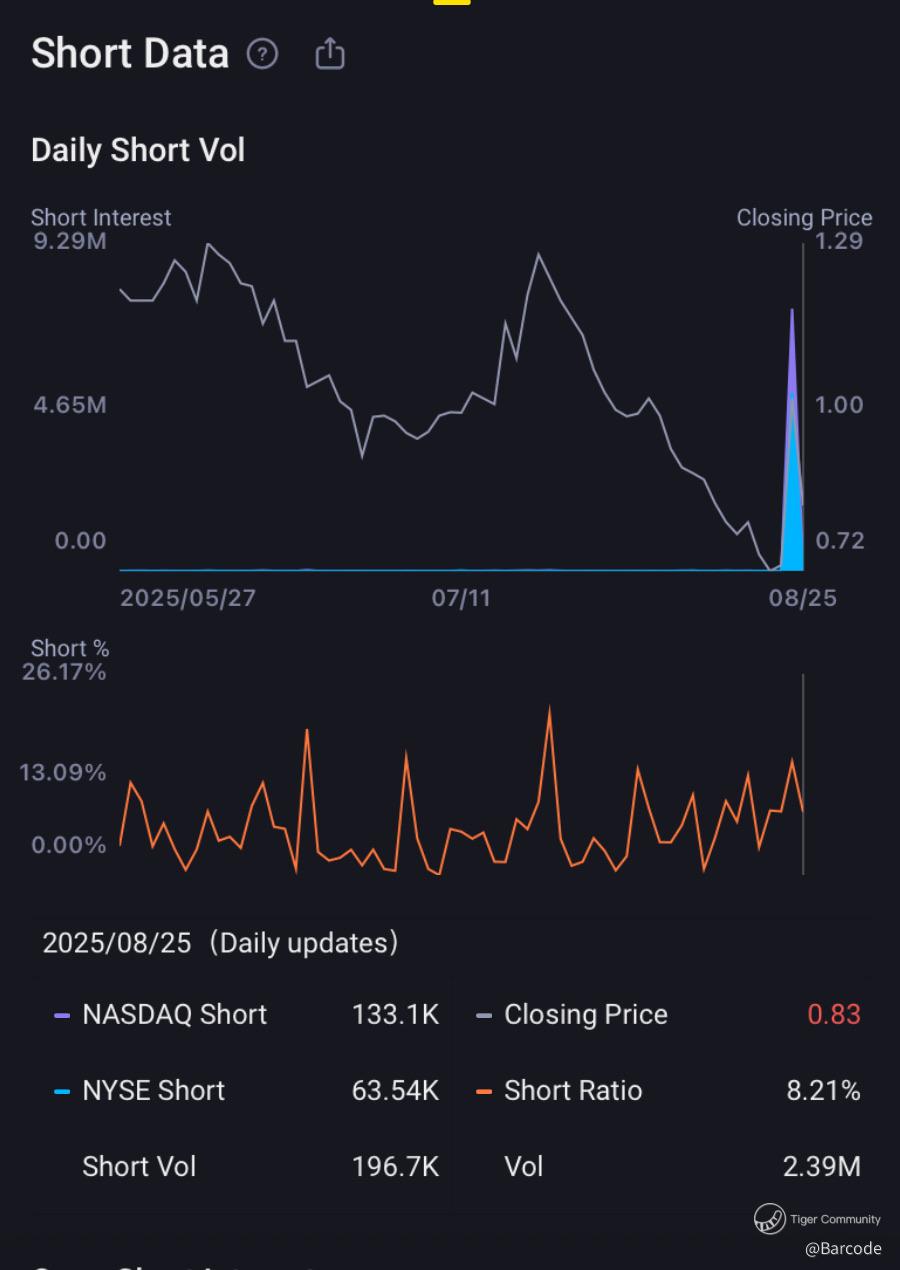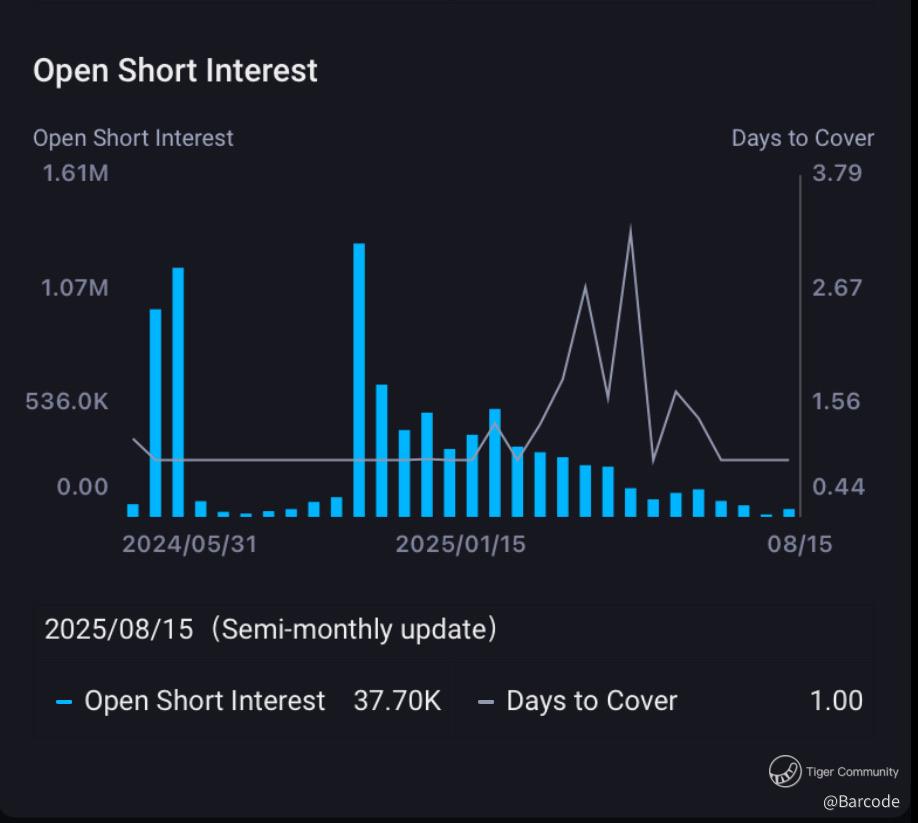 I’m watching this because short covering on high volume spikes could act as an accelerant. The open short interest dropped to 37.7K (semi-monthly update), showing positioning is vulnerable. I’m confident that any positive narrative shift in September could force shorts to unwind quickly.