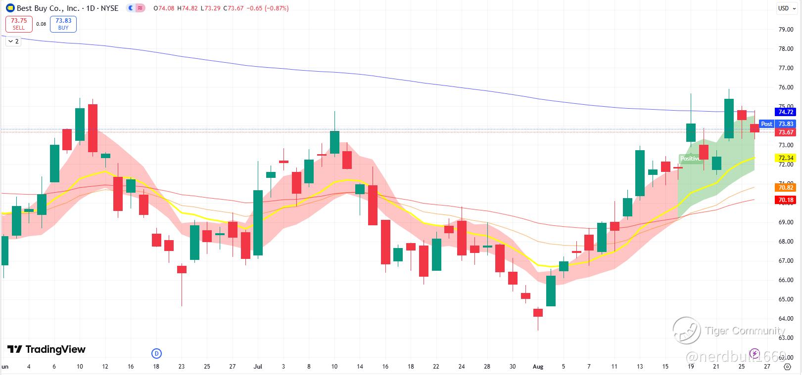 $Best Buy(BBY)$ is scheduled to report its Q2 2026 earnings on Thursday, August 28, 2025. The market's outlook is one of caution, as the consumer electronics retailer faces ongoing challenges from a weak consumer spending environment and tough competition.