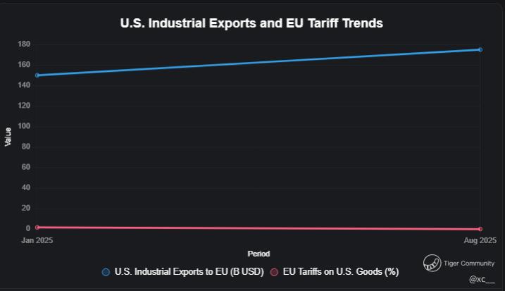 The European Union has proposed a bold move to eliminate all tariffs on U.S. industrial goods, a direct response to President Trump’s escalating trade demands as of August 27, 2025. This comes amid a global market buzzing with the $S&P 500(.SPX)$ S&P 500 at 6,512.34, Nasdaq at 21,918.45, and Bitcoin at $123,456, though tariffs (30% on EU/Mexico, 35% on Canada) and oil at $74.50/barrel inject uncertainty. The VIX at 14.12 signals calm, but the EU’s proposal—set for fast-track legislation by week’s end—could reshape the $1.97 trillion U.S.-EU trade relationship. In exchange, Trump has hinted at lowering the 15% tariff on EU autos from the July deal, down from a threatened 30%. With U.S. industrial exports to the EU rising to $175 billion, this zero-tariff offer could unlock billions, but is it a win for American manufacturers or a strategic concession under pressure? This deep dive explores the stakes, sentiment, and strategies to navigate this trade pivot.