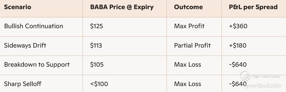 This setup assumes BABA holds above the $115 support zone, which aligns with recent technical strength and your preference for asymmetric convexity.