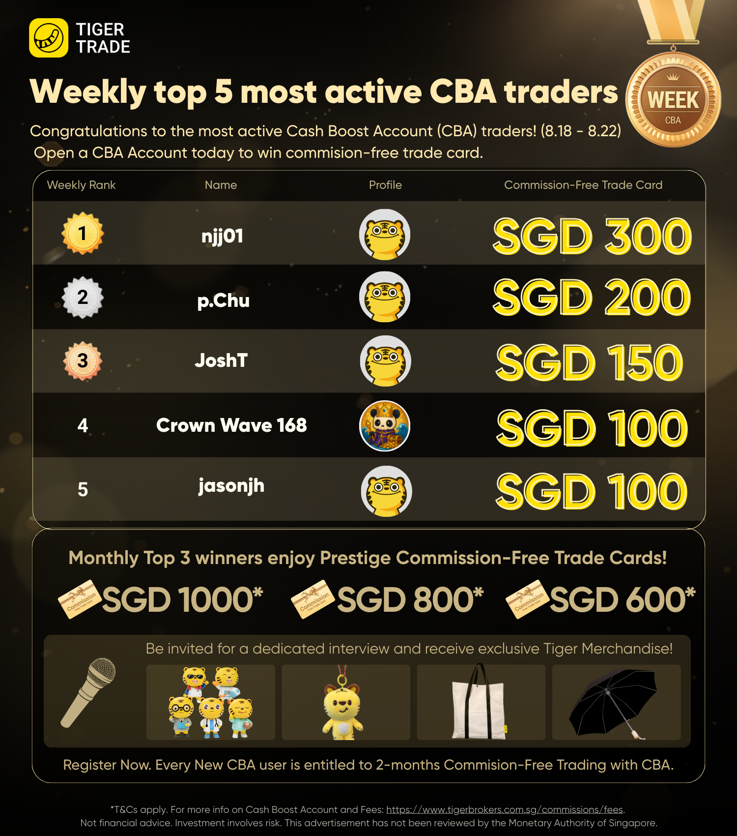 For SG users only, 🏦 Open a CBA today and enjoy access to a trading limit of up to SGD 20,000 with upcoming 0-commission, unlimited trading on SG, HK, and US stocks, as well as ETFs.