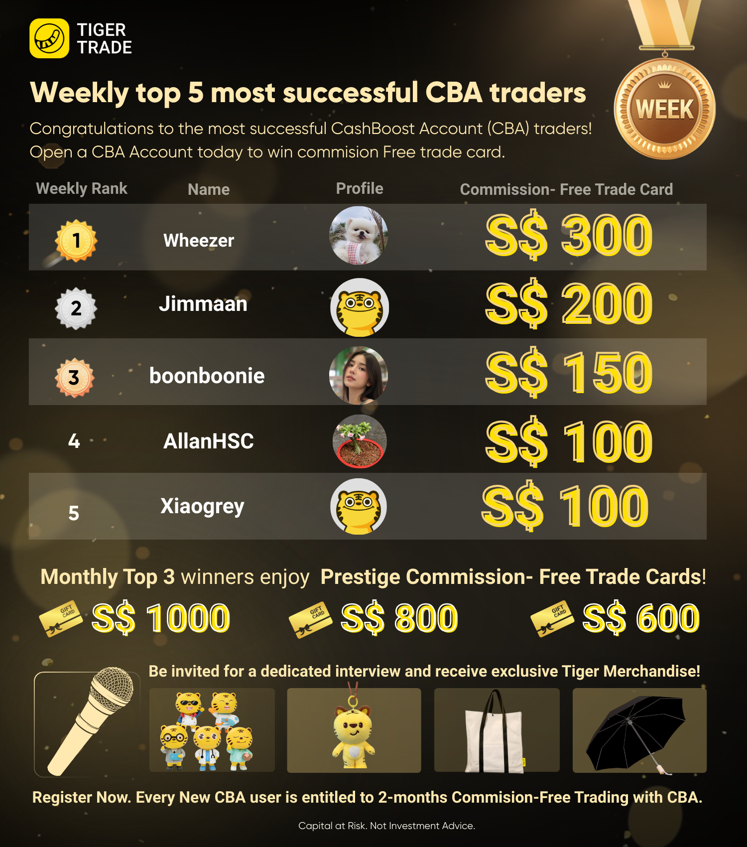 Weekly Rewards of Commission-Free Trade Card ranging from SGD 100~SGD 300!