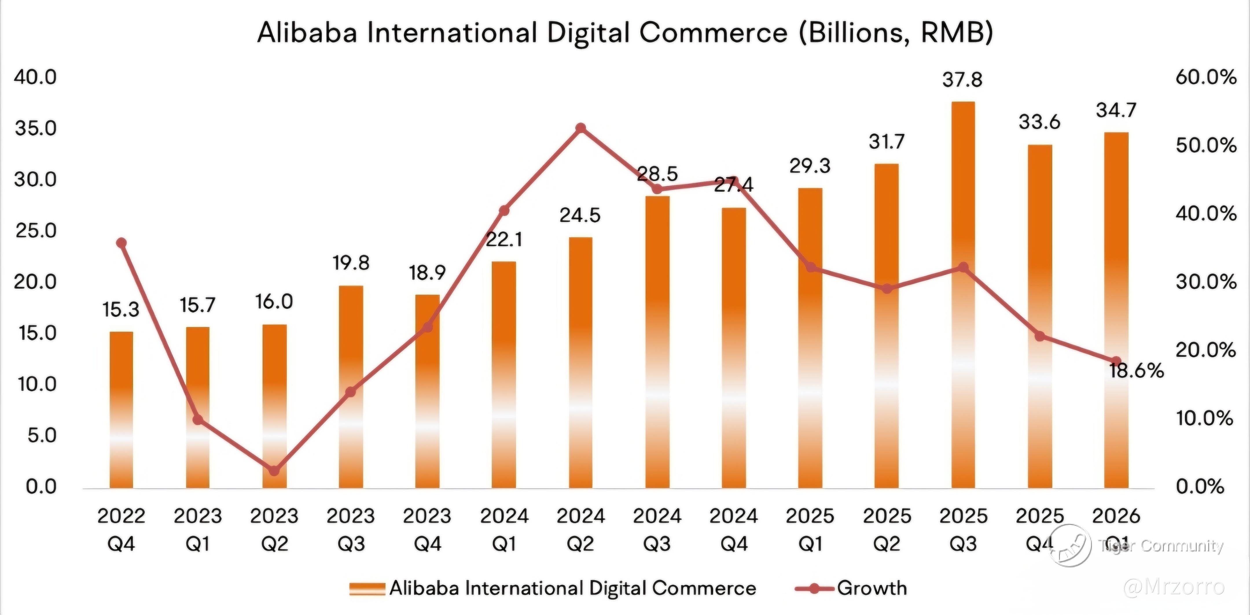 Revenue from AIDC grew 18.6% year-over-year to RMB 34.74 billion (US$4.85 billion), primarily driven by strong performance in cross-border businesses.