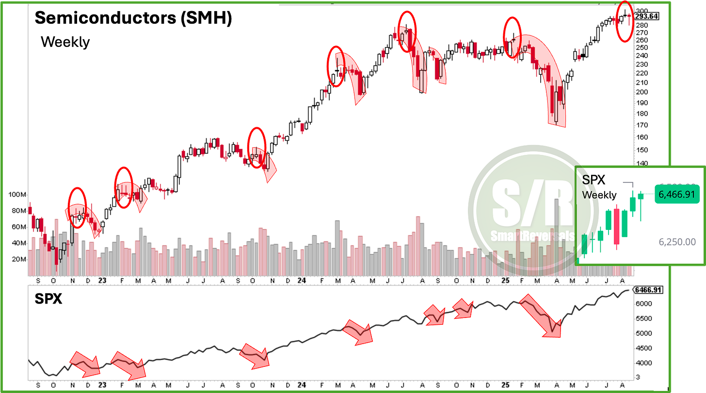 Last Sunday in the premium chat, I shared this chart highlighting the warning signs from the semiconductor sector and the bearish price formation in the S&P 500. That weekly setup has now received its validation. Even though prices had to adjust on Friday—making the previous day's strength look like a potential bull trap—the bearish thesis is playing out.