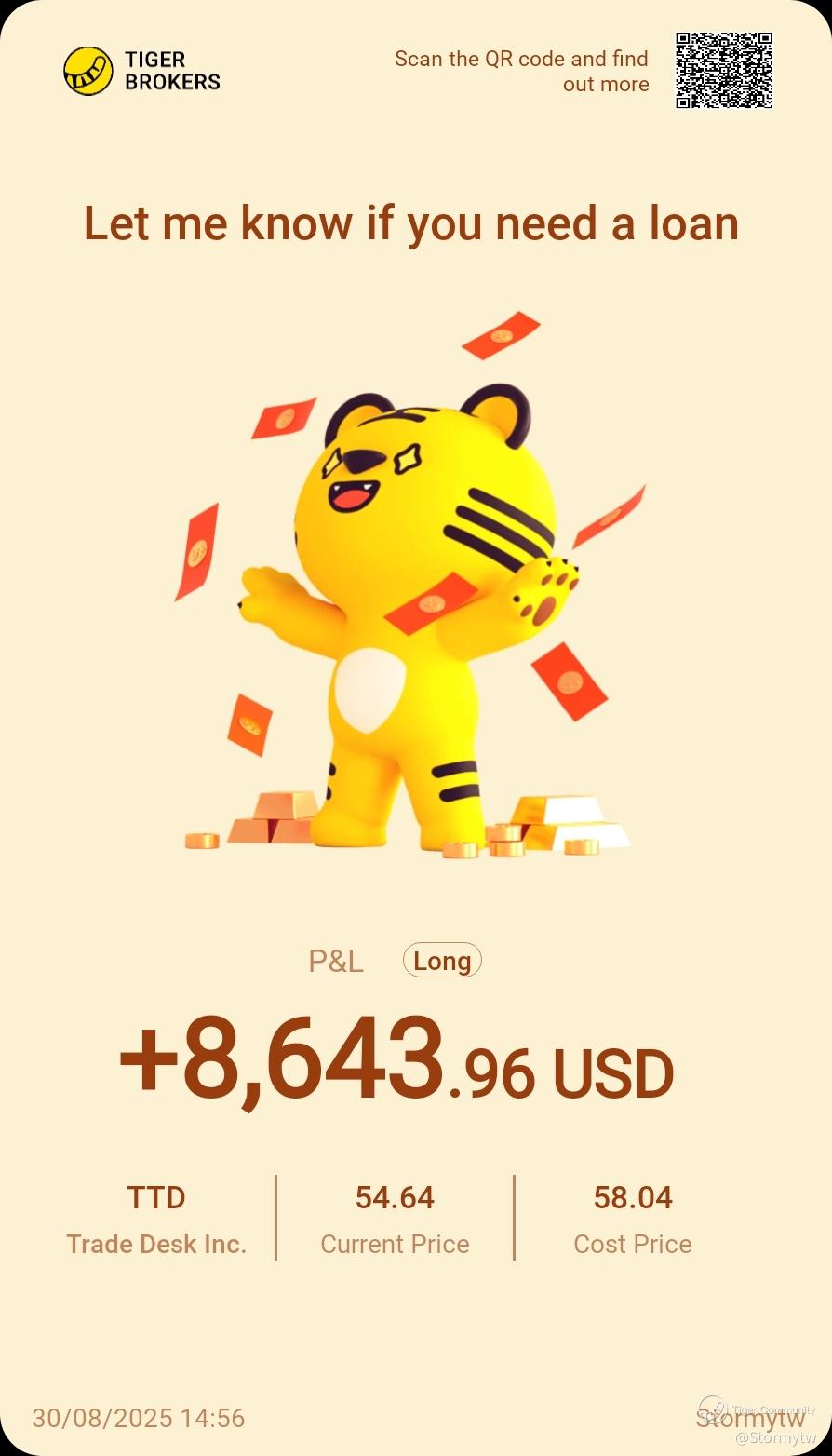 - JackQuant·2025-09-01True, TTD dips often set up strong rebounds, and adtech fundamentals are still intact. 📈LikeReport