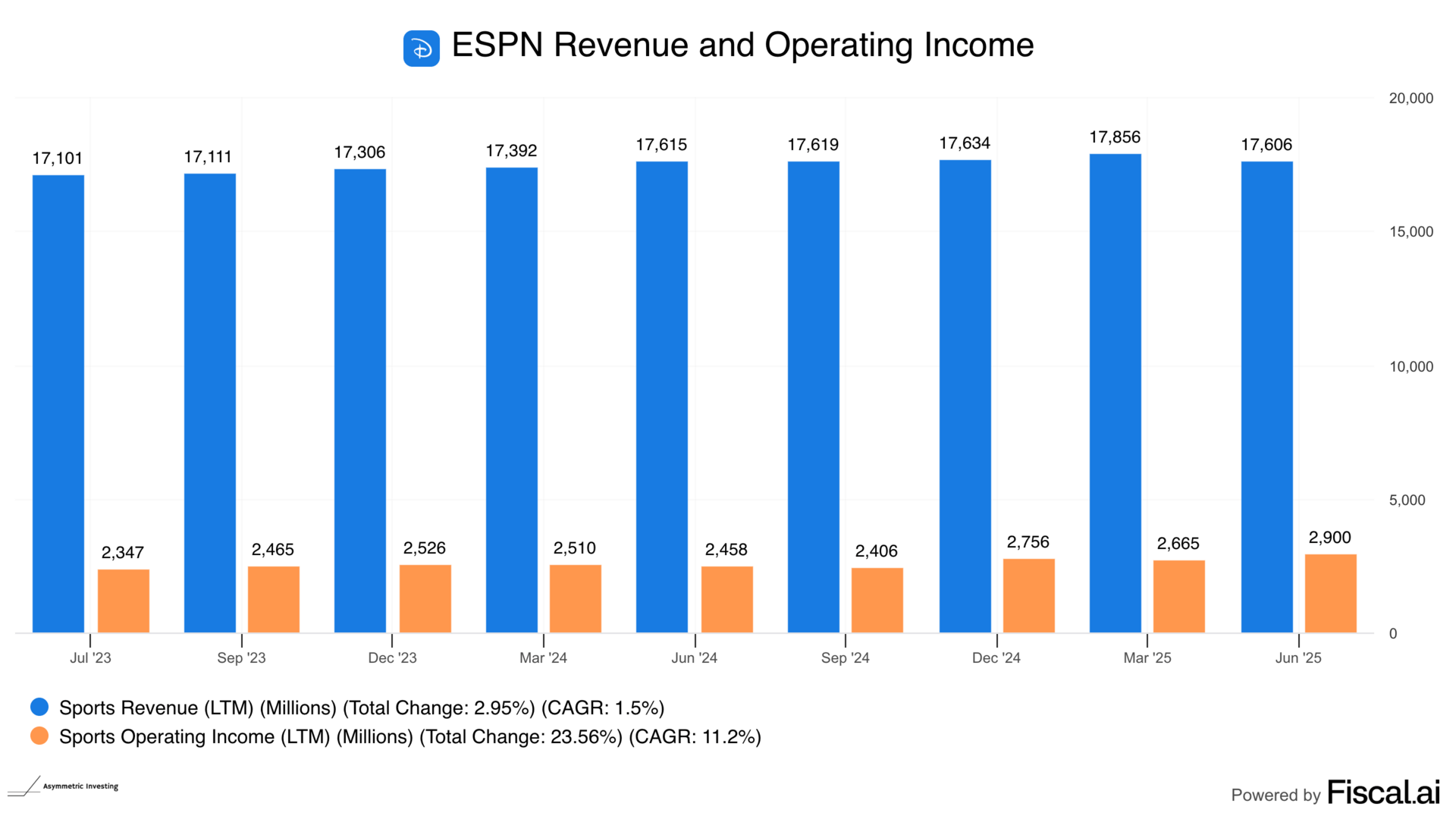 ESPN is in an asset accumulation phase, not unlike Netflix in the 2010s. And then suddenly, in 2020, Netflix decided to lean into operating leverage and stopped increasing its content budget at the same rate.