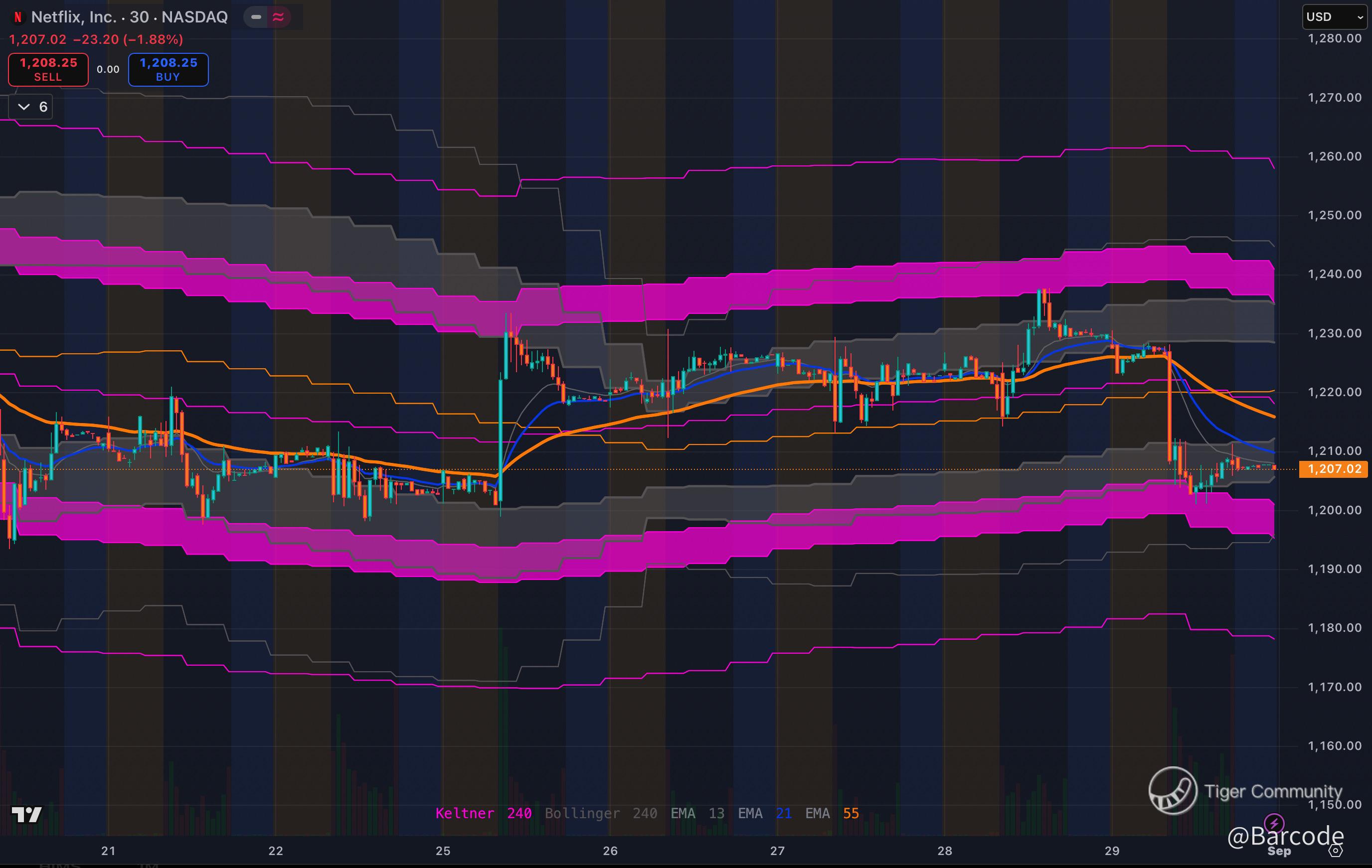 I believe the breakdown is critical. $NFLX closed at $1,207.84, slicing under its late-August trendline.