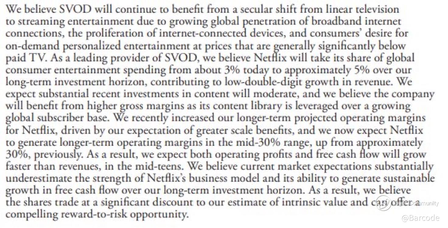 “Netflix’s share of global consumer entertainment spend will rise from ~3% today to ~5%. As content spend moderates, scale will expand margins into the mid-30s (vs 30% prior). Free cash flow accelerates, creating a compelling reward-to-risk profile.”