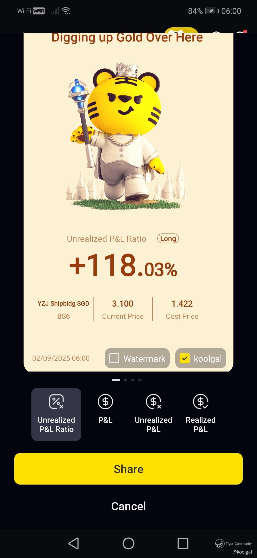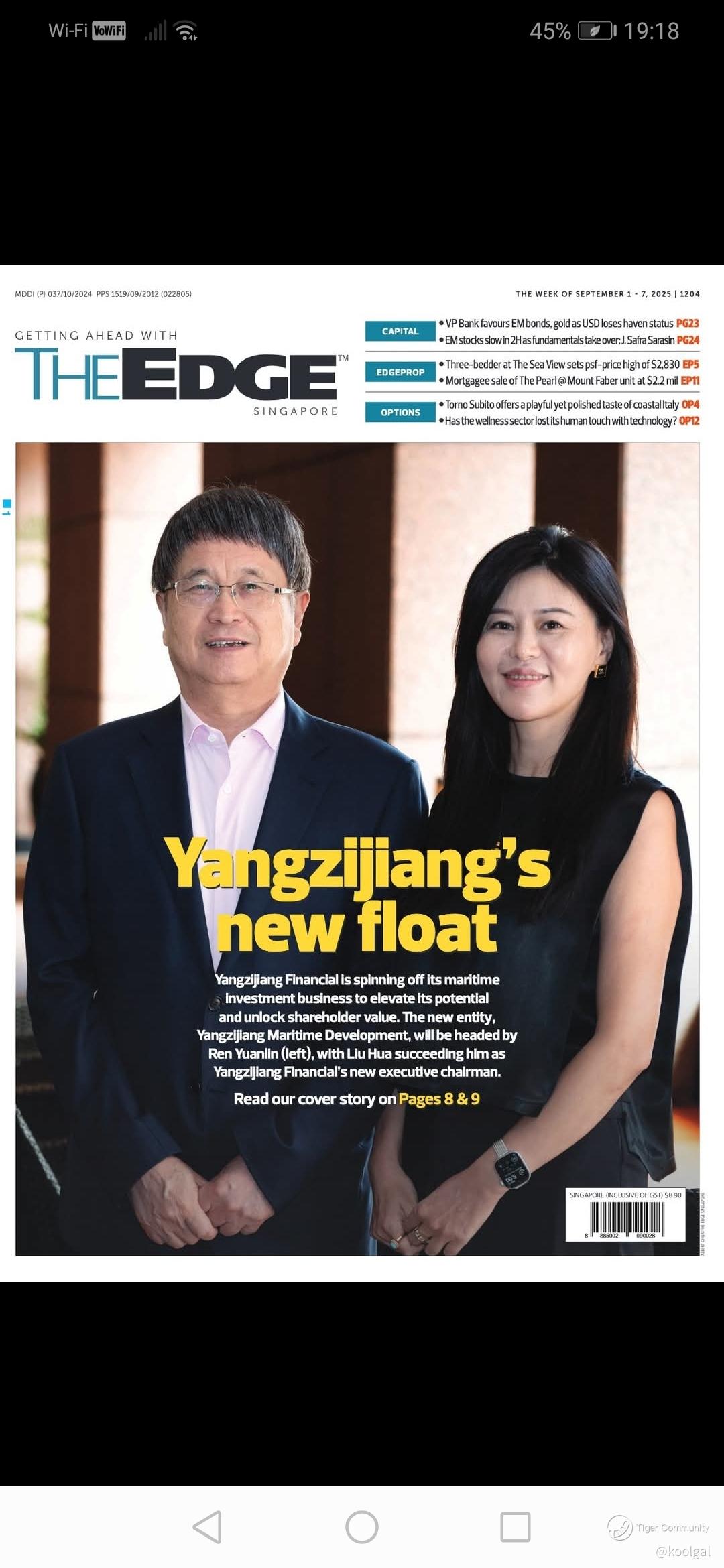 not as a fleeting romance but as a lifelong partnership. Yangzijiang's 6 decades of relentless reinvention, an unbreakable order book and now a record Q2 25 earnings have turned that conviction into a 118% gain on my shipyard stake. Along the way, I received $YZJ Fin Hldg(YF8.SI)$