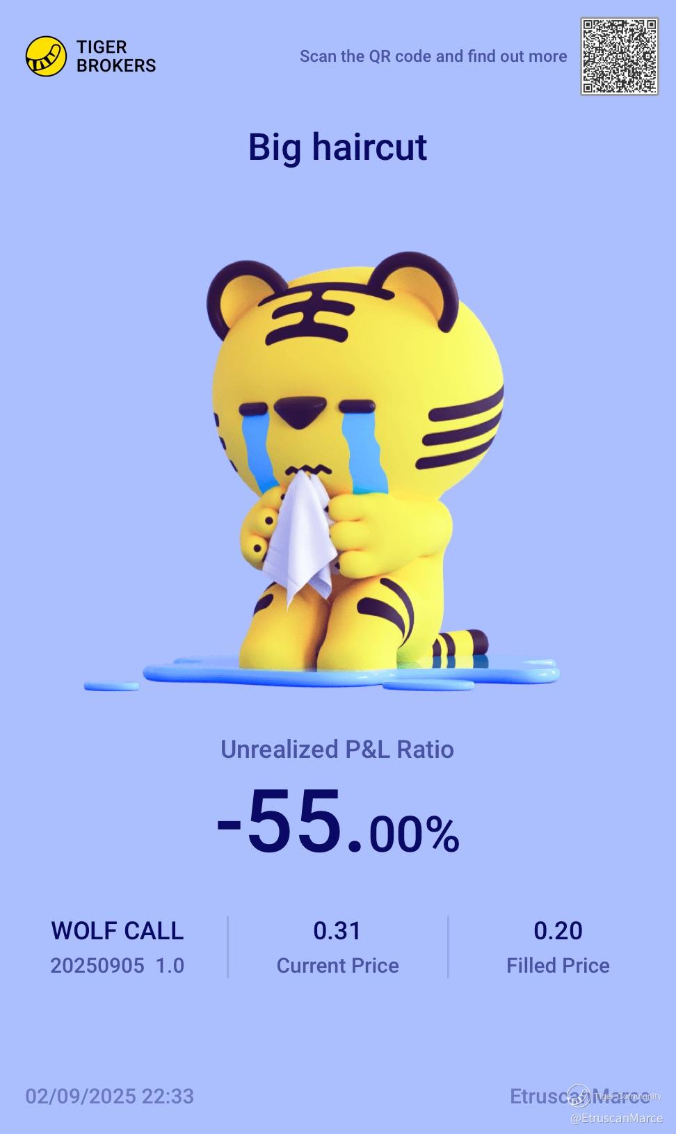 sold $WOLF 20250905 1.0 CALL$ wrong. selected the wrong strike price. anyway hv to accept and move on.