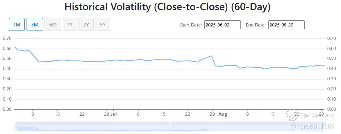 PagerDuty (PD) had 60-Day Historical Volatility (Close-to-Close) of 0.4334 for 2025-08-29.