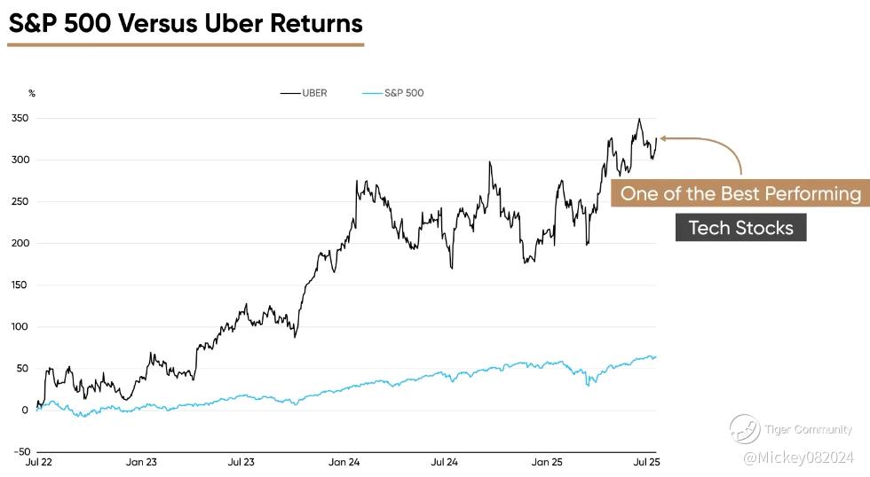 Uber’s stock has been on a tear. If you had invested $10,000 into the ride-hailing company three years ago, your investment would now be worth more than $30,000. That represents a gain of over 300%—nearly five times the return of the S&P 500 over the same period. Few large-cap tech stocks have delivered such an extraordinary performance in recent years.