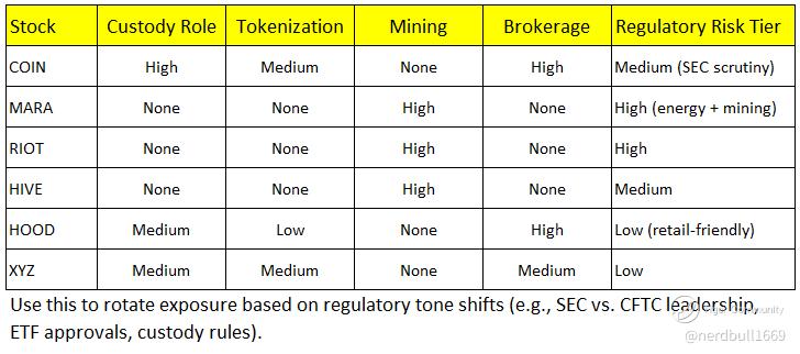 With crypto now a strategic priority for sovereigns and regulators, stocks with exposure to: