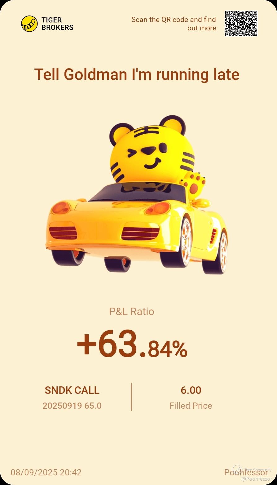 $SNDK 20250919 65.0 CALL$ Taking profit from my swing trade setup after hitting $70
