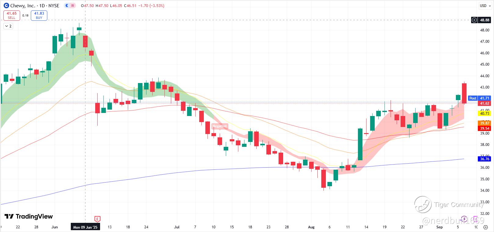 - Valerie Archibald·2025-09-09TOPCome on $43 before earnings!! I want out Chewy!!1Report