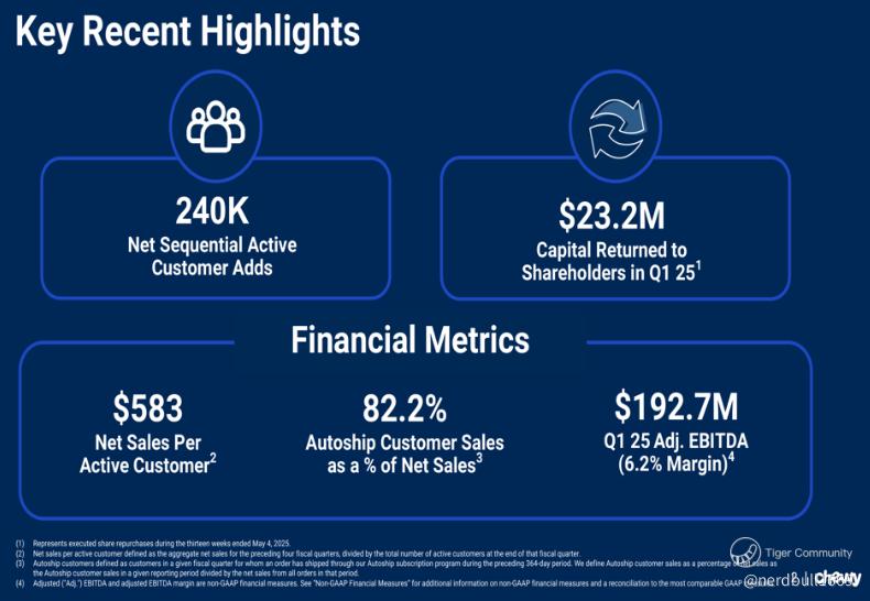 Operational Highlights: The report highlighted the success of Chewy's autoship subscription service, which represented a dominant 82.2% of total sales. The company also demonstrated strong profitability, with adjusted EBITDA margin expanding to 6.2%.