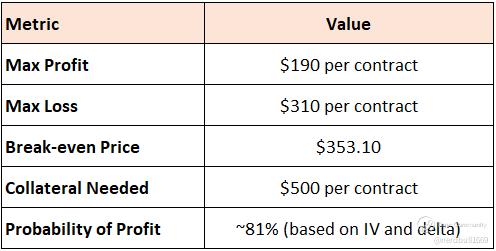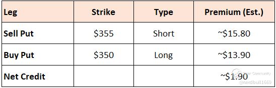 The $355/$350 zone sits just below recent support, offering a technical cushion if price stabilizes post-earnings.