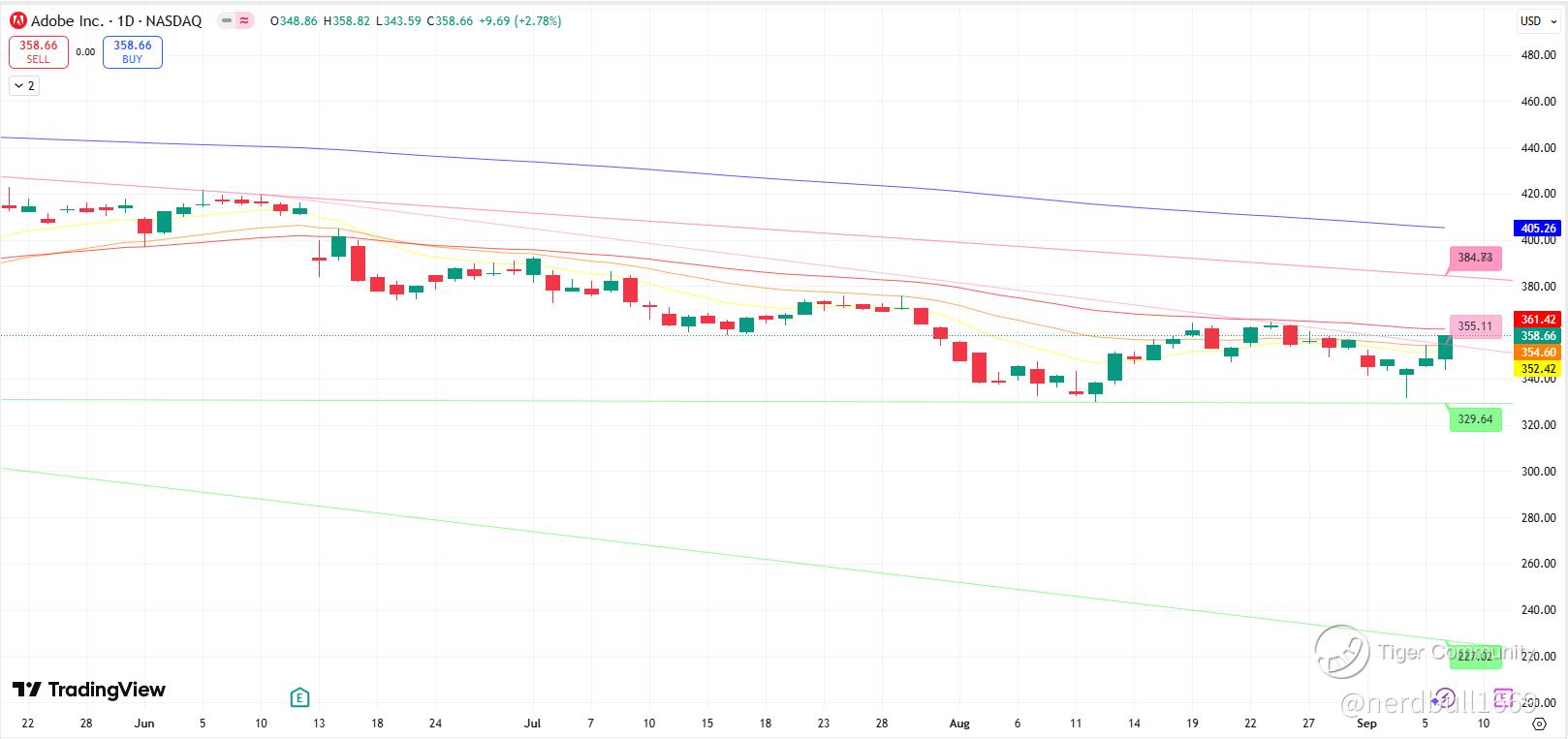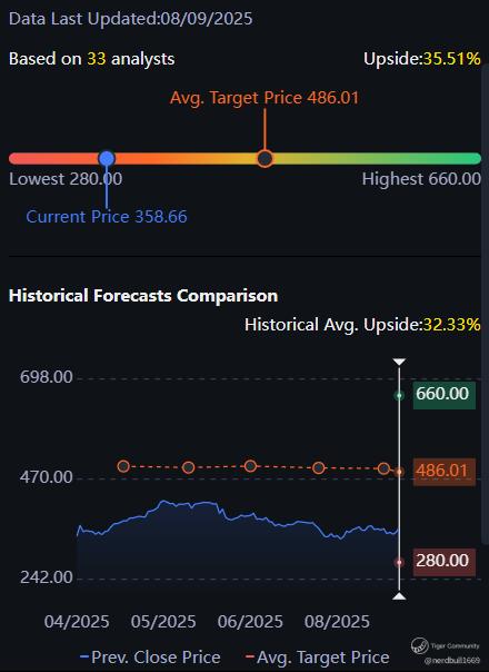 • Current Price: ~$358.66 (as of Sept 8 close)