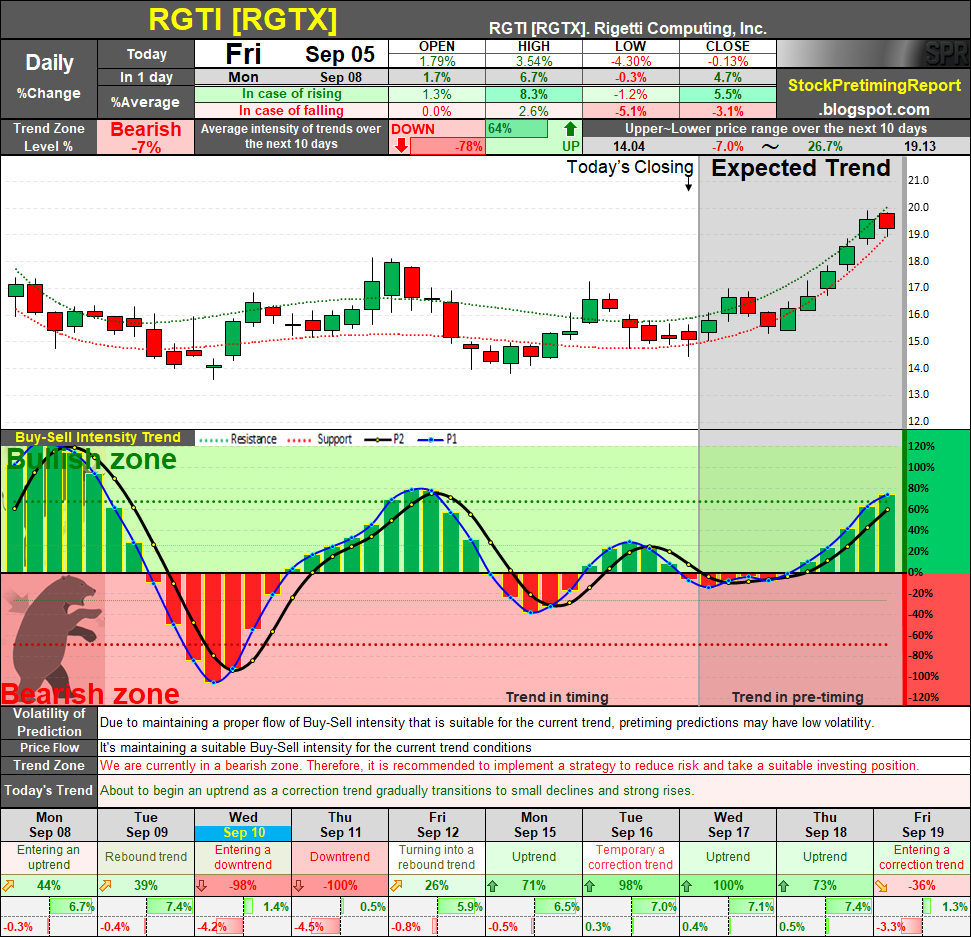 Key Insight: While RGTI is technically in a Bearish zone, forward projections point to a possible upward breakout within the next 1–2 weeks.
