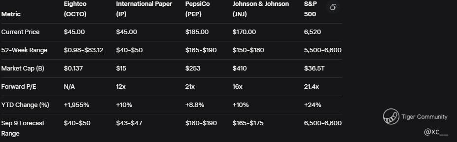 Eightco Holdings ( $Eightco Holdings(OCTO)$ ) has skyrocketed 1,954.79% YTD to $45.00, driven by its pivot to inventory management and packaging solutions, but the micro-cap's $137 million market cap raises questions about sustainability amid high volatility. With the S&P 500 at 6,520, Nasdaq at 21,950, and Bitcoin at $123,456, the VIX at 14.12 reflects calm amid oil at $74.50/barrel. Posts found on X buzz with “OCTO meme magic,” but some warn of “pump and dump.” This deep dive explores the surge, current stance, future prospects, market reactions, trading opportunities, and a plan to ride the rocket or hedge the trap.