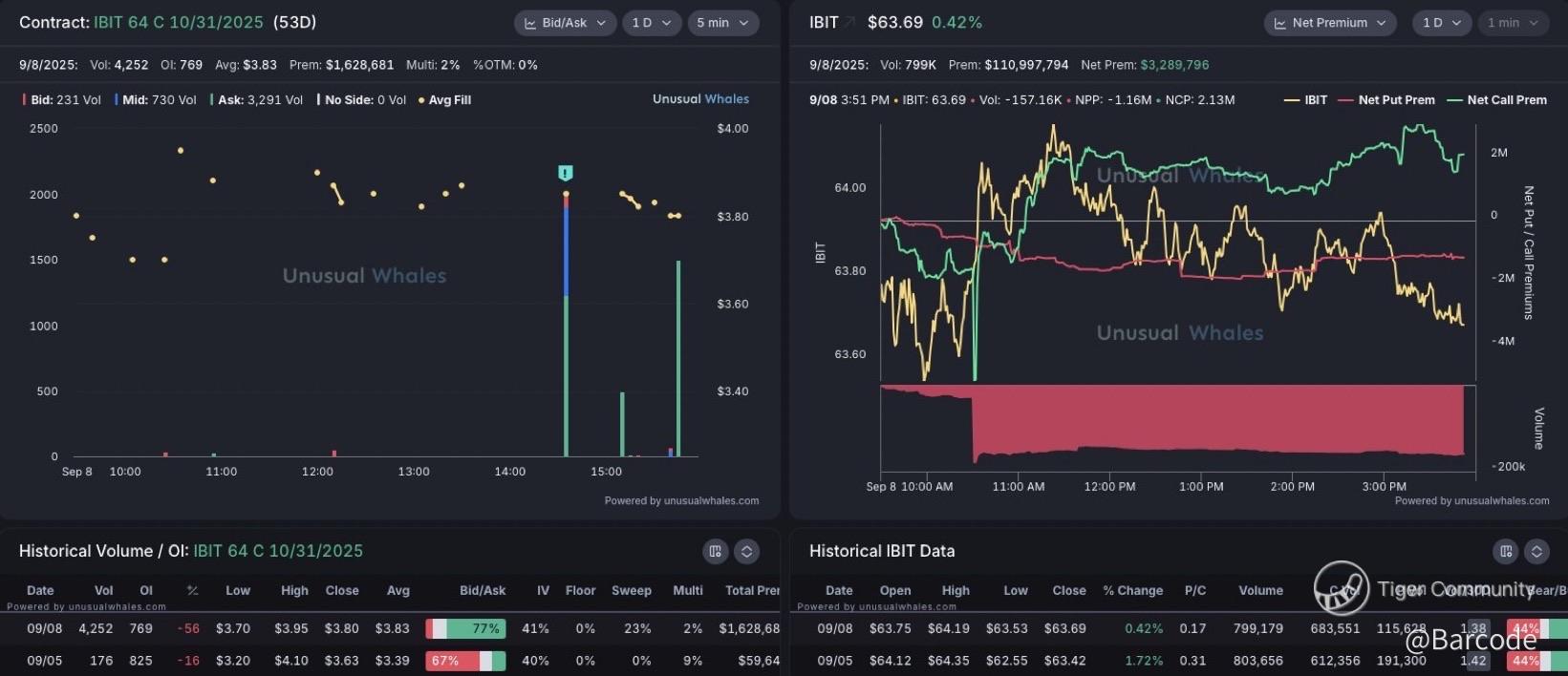 $iShares Bitcoin Trust ETF(IBIT)$ $iShares ETF(ETHA)$ $CME Bitcoin - main 2509(BTCmain)$ I’m fully convinced Big Money is setting up for a Bitcoin-led breakout into October. The data shows institutions quietly rotating out of Ethereum while loading upside exposure in $IBIT calls. This divergence is too clear to ignore.