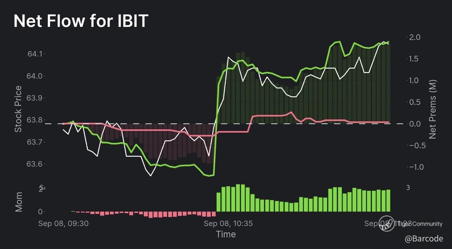 The intraday $IBIT flow data backs it up. As call buyers stepped in, net premiums spiked sharply into positive territory, driving the stock price higher. This real-time alignment between option flows and price action shows conviction capital already shaping direction before the breakout even happens.