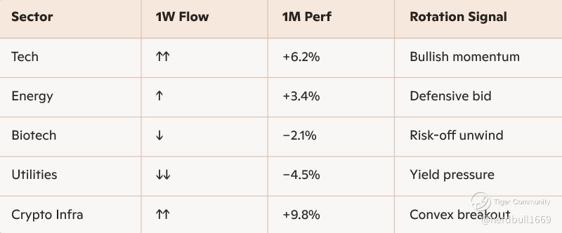 Heatmap: Sector flows (Tech, Energy, Financials, Biotech, Infra)