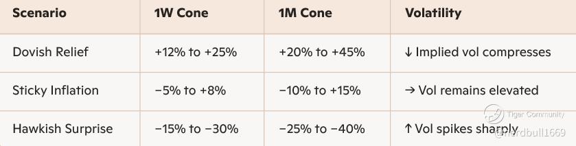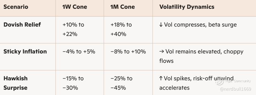Cone skew driven by BTC sensitivity, macro liquidity, and risk-on flows.