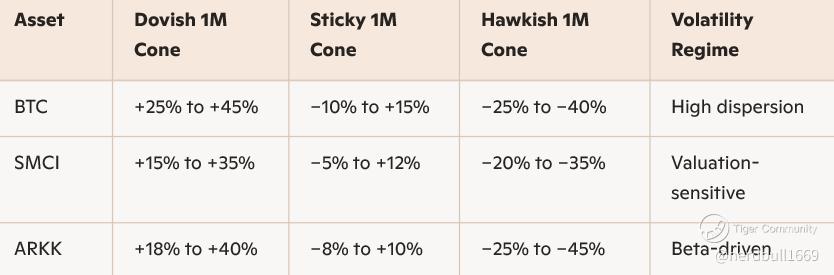 SMCI’s cone skew is highly sensitive to liquidity and growth sentiment. Tail risk expands sharply under hawkish pivots due to valuation sensitivity.