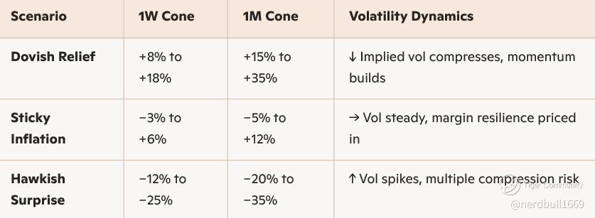 We will simulate cone dynamics under the three PPI-driven macro regimes—Dovish Relief, Sticky Inflation, and Hawkish Surprise—while integrating volatility overlays and tail risk shading.