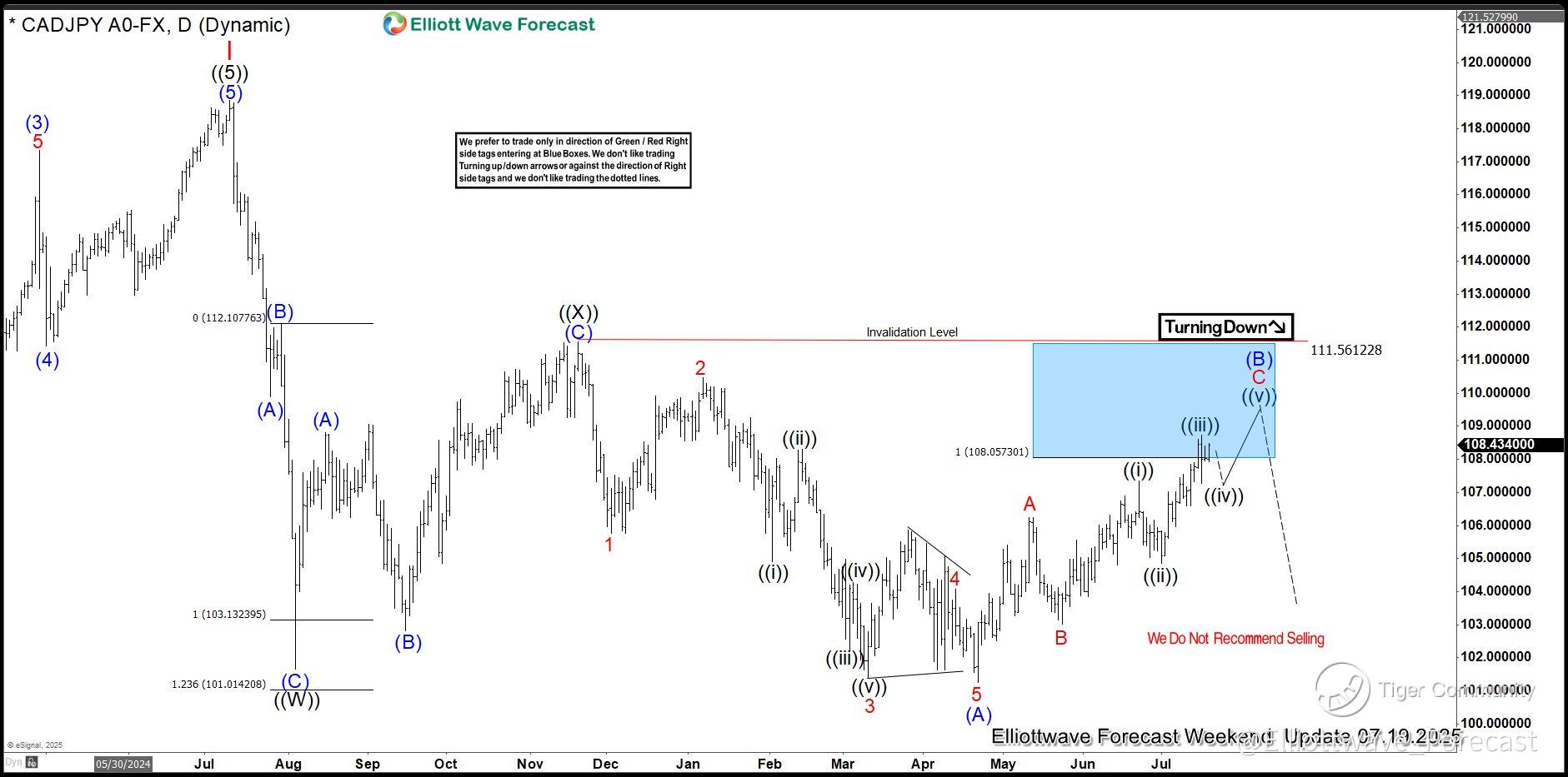 Elliott Wave Blue Box Payoff: CADJPY Drops as Predicted