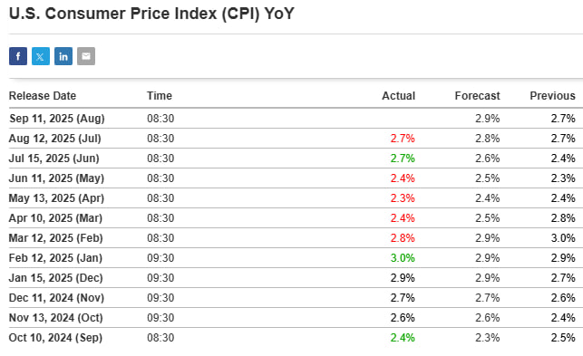 CPI (Sep 11): Forecast at 2.9% (vs 2.7% prior).