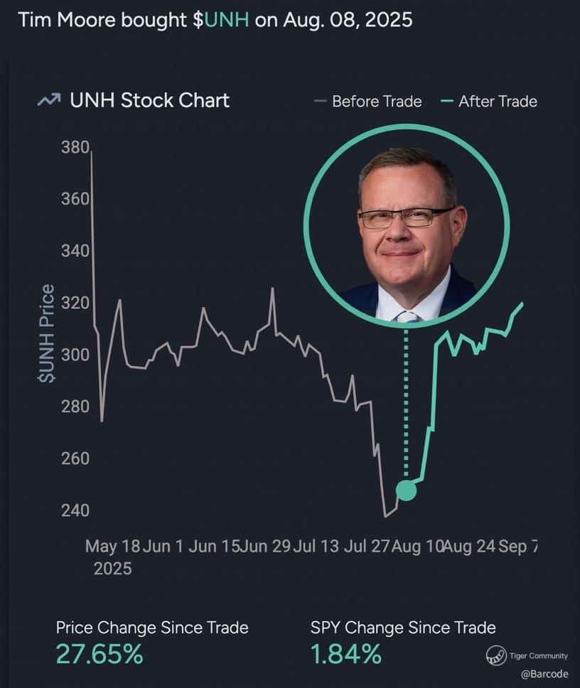 Buffettโs Berkshire 13F shows 2.45M shares worth $764M. Tepperโs $BABA haul delivered him +500M profits; I believe $UNH is next in line for institutional rerating. When capital of this magnitude positions, itโs not a trade, itโs a statement.