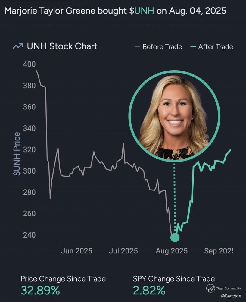 Congressional dip-buying added fuel: both Marjorie Taylor Greene and Tim Moore disclosed purchases in early August. Since then, MTGโs trade is already up +32.89% while Mooreโs is up +27.65%, massively outperforming SPYโs +2โ3%. These werenโt random moves; they aligned with one of the sharpest reversal zones in recent memory.