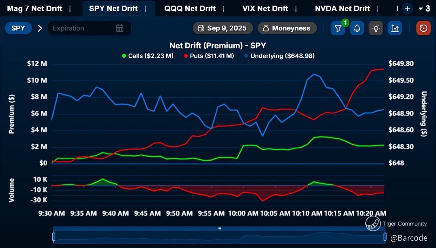 - Tui Jude·2025-09-10TOP📊That $6M put spike at $648.98 is the tell for me, it’s hedging pressure layered on top of the gamma wall. Dealers holding the tape near $650 until CPI is straight out of the $QQQ playbook. I think if inflation undercuts, we see that coil spring into a clean $SPX leg higher.3Report