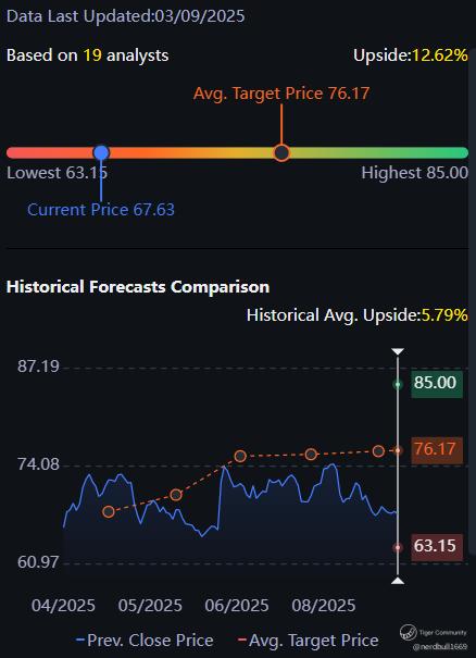 Based on 19 analysts from Tiger Brokers offering 12 month price targets for Kroger Company in the last 3 months. The average price target is $76.17 with a high forecast of $85.00 and a low forecast of $63.15. The average price target represents a 12.62% change from the last price of $67.63.