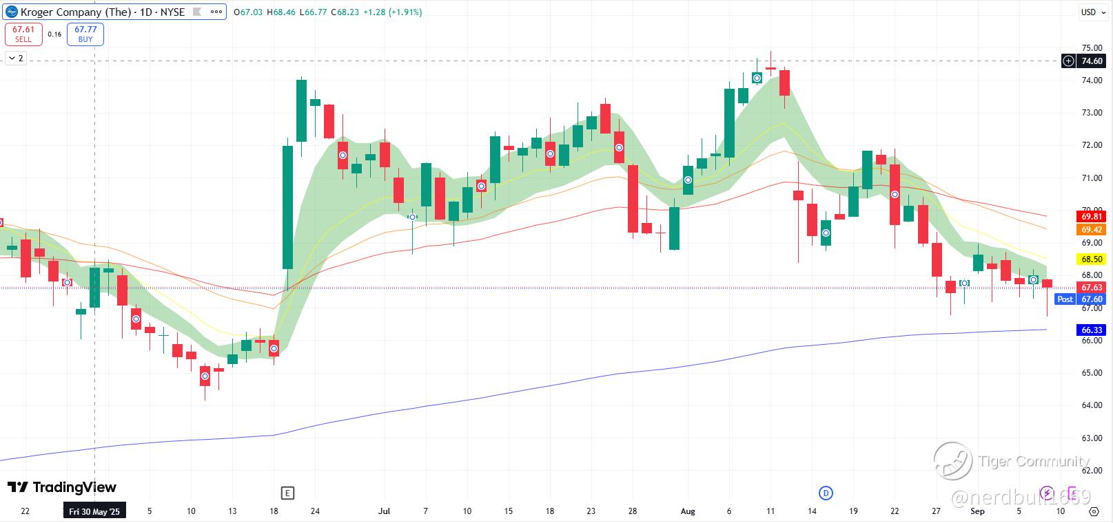 $Kroger(KR)$ is scheduled to report its Q2 2025 earnings on Thursday, September 11, 2025, before the market opens. The fiscal quarter for this report ended on August 16, 2025.