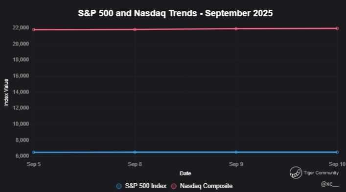 $S&P 500(.SPX)$ $NASDAQ(.IXIC)$ The market hums with activity on September 10, 2025, as the S&P 500 holds steady at 6,520.34 and Nasdaq climbs to 21,950, fueled by tech strength and rate cut anticipation. Bitcoin sits at $123,456, oil at $74.50/barrel, and the VIX at 14.12 signals calm amid tariff talks. Posts found on X highlight Oracle’s AI surge and China’s deflation woes, while trending topics like LMSY’s Instagram milestone add cultural noise. This deep dive uncovers key news, standout stocks, trading opportunities, and a plan to navigate today’s moves.